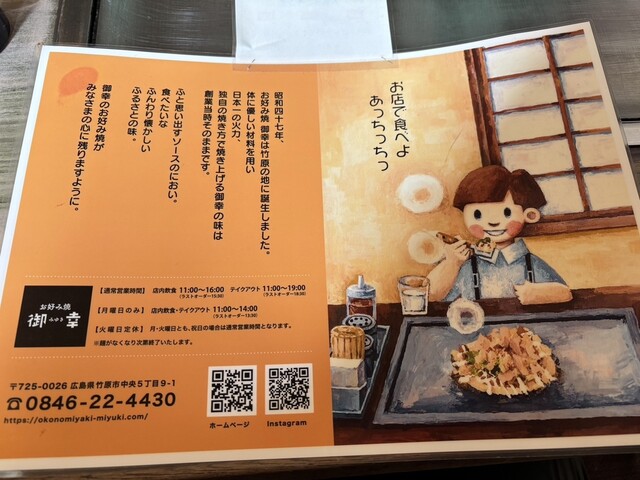 お好み焼きの竹原焼きを食べにこちらのお店に行きました。11時開店で、10時40分に着きましたがすでに2組の方が名簿に名前が書かれていました。