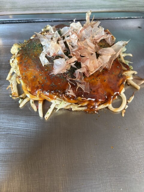 11時前にお店の方が注文を事前に受けにきてくれました。入店後、すぐに焼きたての竹原焼きのそばダブルをいただきました。竹原焼きは卵がなく、酒粕の匂いがとてもいいです。箸がどんどん進み、あっという間に完食しました。お好み焼きを食べる前におでんをいただきましたがこちらも美味しくいただきました^_^