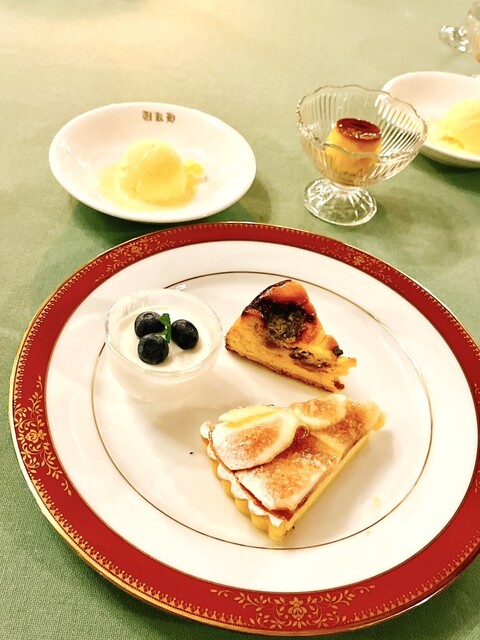8種類ほどあったデザートの中から、イチジクのタルト、ゴルゴンゾーラのチーズケーキ、クラシックプリン、ブルーベリーのパンナコッタ、バニラアイスを頂きました。
