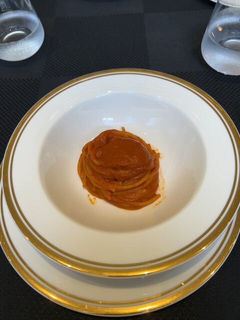 キタッラ(イタリアの平打ちロングパスタ)。ヘーゼルナッツソースGood!