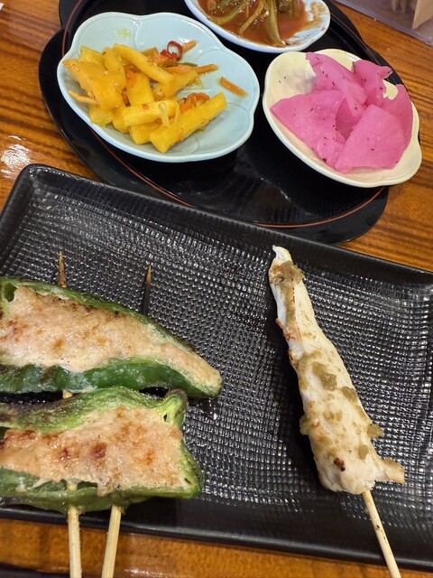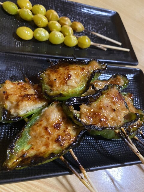 オススメ串は「たたき」「ピーマンの肉詰め」「えんがわ」「こころのこり」「ぎんなん」等。