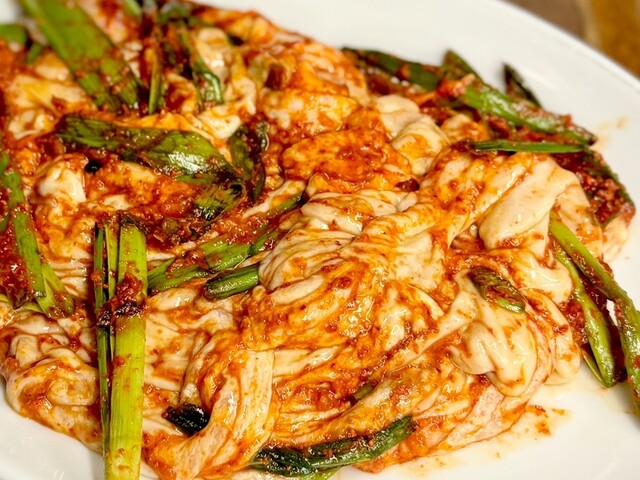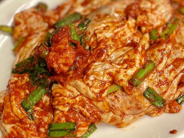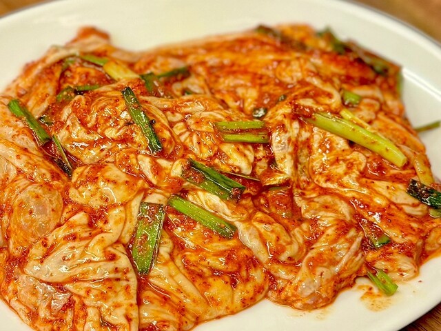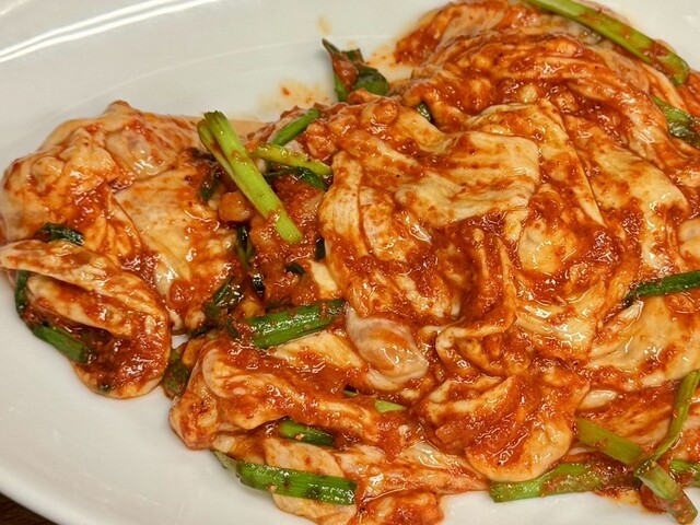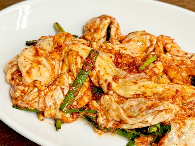 コブクロは綺麗なピンク色をしていて海鮮のようなサクサク感があり、特有の独特な臭みは一切なし。