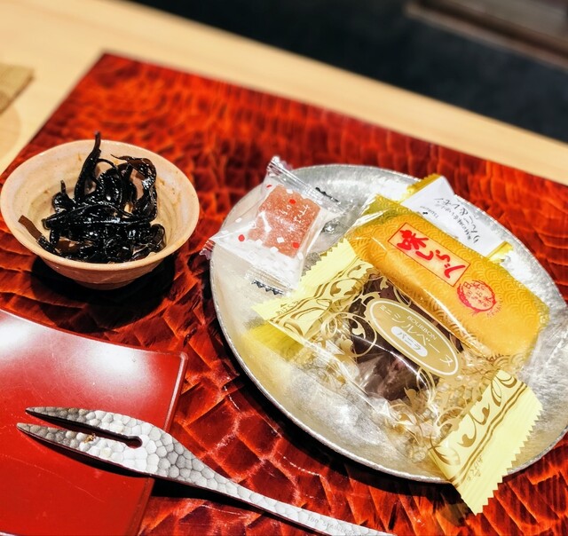 昆布の佃煮とお菓子いっぱいだしてくださりました。常連様とお話しが弾み煎茶と共に長居してしまいます