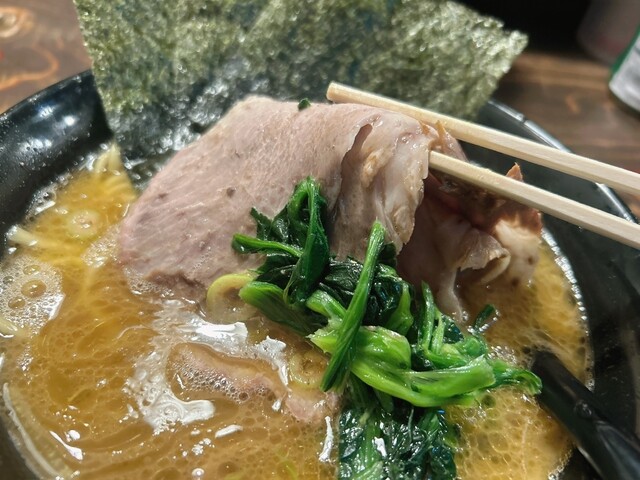 久しぶりに仕事で相模大野駅に来ていたので真っ先に混雑を見にクックらへ。この酷暑のおかげなのか奇跡的に並ばずに入店できました。今回もチャーシューメンをオーダー。燻したチャーシューのシブい香りを楽しみながら、直系仕込みの正油豚骨スープを一口。モチモチの中太麺、箸休めにほうれん草。ゆっくり味わうつもりがいつの間にか食べ終える没入感。ラーメン屋さんとは思えないオシャレな空間で本格家系ラーメン。大野に行ったら必ず食べて欲しいです。