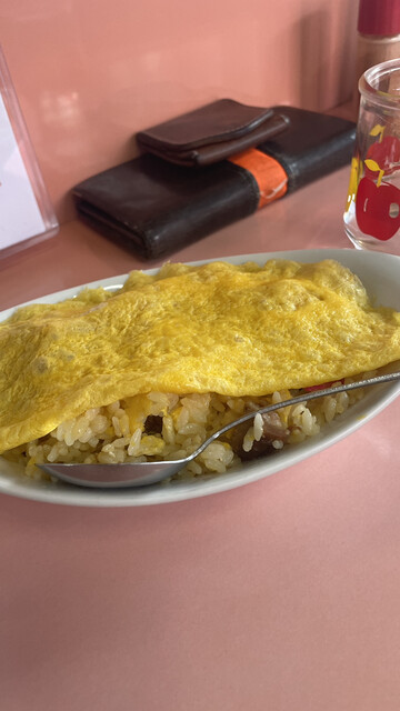 そしてチャーハン!薄い卵焼きがのっかってる。初めて見るビジュアル!なかなかチャーハンに卵焼きのってることないよね!