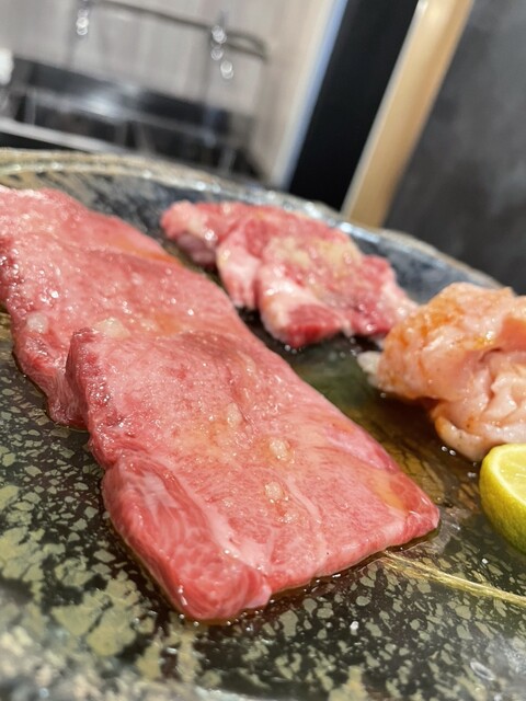 お次は内臓系の牛タン、タンカルビ、ミノ、中でもミノの火入れに感動!