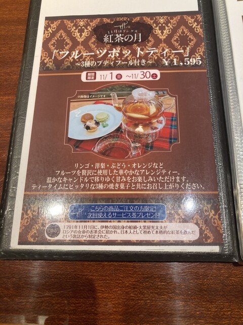 こちらは、今月限定のフルーツポットティー。友人がオーダーしていました。とても良い香りがしましたよ。また、フルーツ入りなので、見た目めテンション上がります!