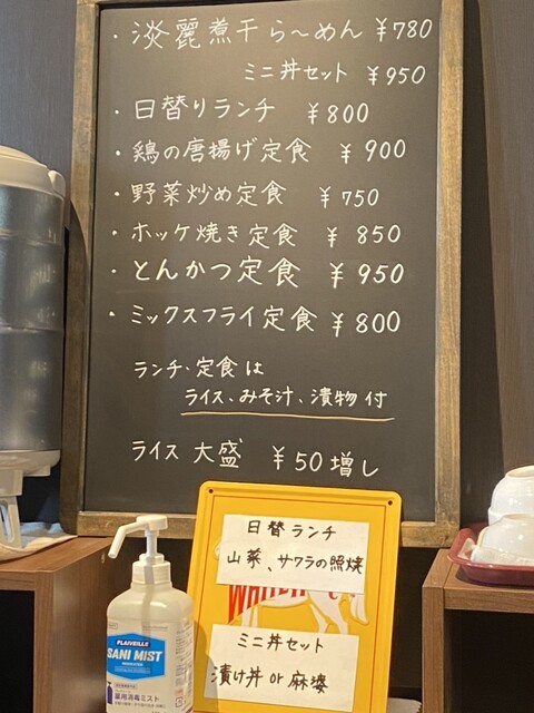 今日の日替わりはお若い方はチョイスしないのか、私以外の方はラーメン+ミニ丼や唐揚げ、とんかつなどオーダーされていたようでした。