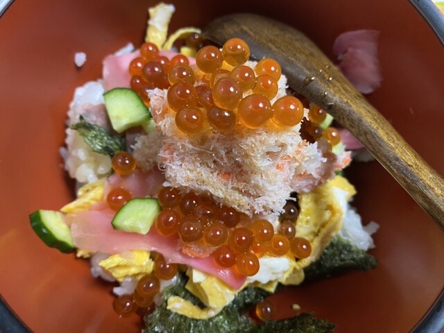 メインの他にお刺身5点盛り(マグロ、ヒラメ、生ウニ、しめ鯖、海老、ホヤ)6点だよぉ(笑)