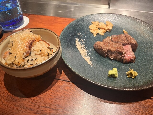 鉄板焼きの上でのサービスは結構どこのお店でもやっているので良くも悪くも見慣れてるところもありますが、1番出汁をサイフォンで珈琲の容器で取った出汁の味噌汁を出していただいたり、釜飯も鉄板の上でグツグツと美味しいくなっている様子がワクワクしました。