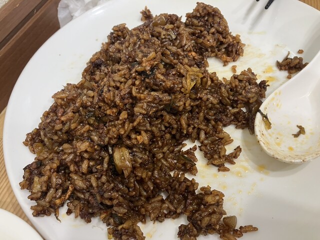 細かく裂かれたチキンがたくさん入っているピリ辛なカレーはご飯にもビールにも合います。