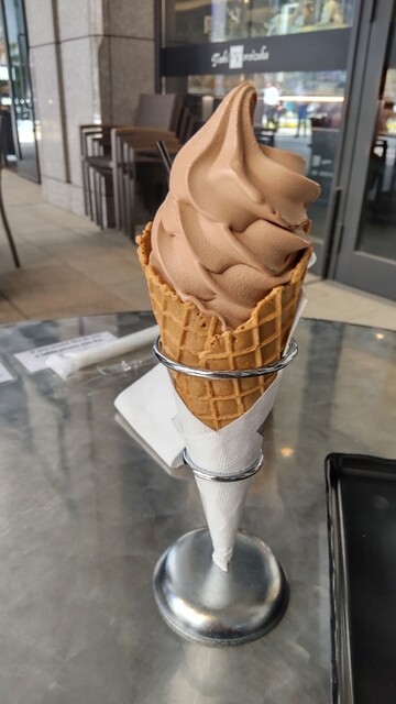 連れと食事の帰り京橋のトシヨロイズカへ、流石に表のカフェは暑いので店内テーブルへ、ソフトクリーム&シュークリーム頂きました。お土産も最近シュークリームは此方のしか食べて居ません。