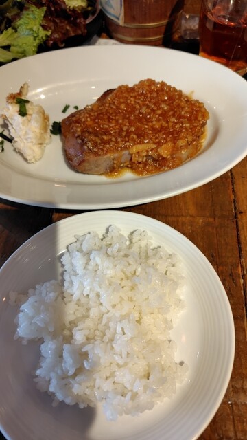 続いてポークとライスが、お肉は300gと結構な厚み低温調理だそう柔らかく掛かっているソースがまた美味しい、幾らでもお肉食べれます