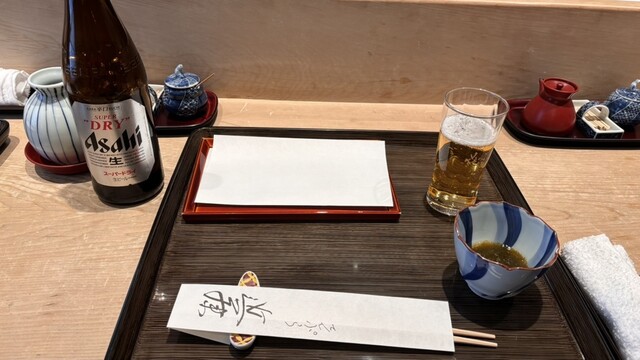 カウンターの目の前で調理を見ながらビールを飲みつつお料理を待ちま...