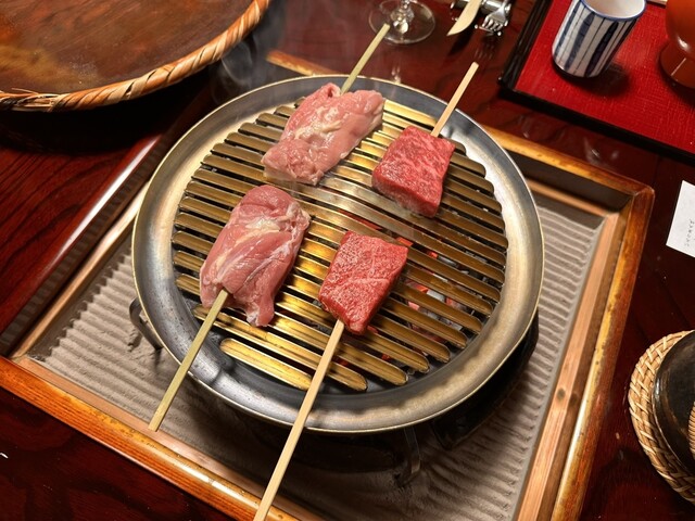 串焼きの前に木の子がたっぷりの鶏つみれ鍋をいただき、もうかなりお腹いっぱいだなという状態でさらに牛、鶏の串焼きをいただきました。お腹いっぱいとはいえやはり美味しく全て食べきれてしまうのですが、お肉はもちろんのこと、個人的には串焼きのしいたけがとっても美味しいので毎回しいたけを楽しみにしてしまいます。
