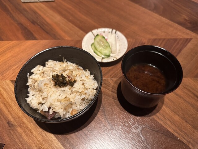 ・お食事(じゃこの炊き込みご飯と赤だし)
