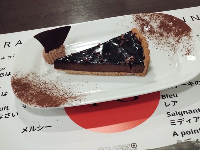 真っ黒なミルフィーユに花束とたっぷりのチョコソース 見た目もミルフィーユの中身にも驚きが満ちている
