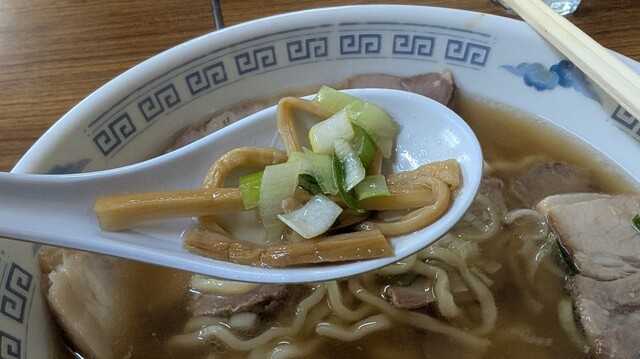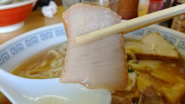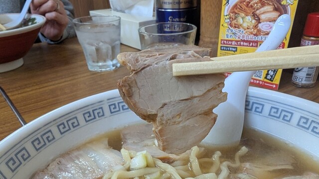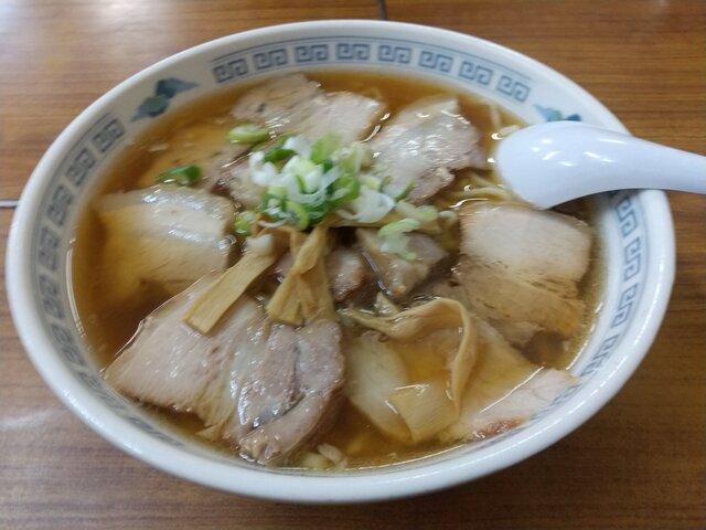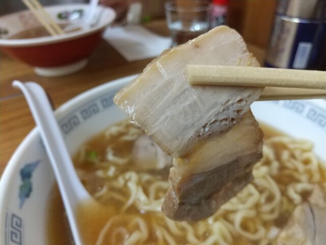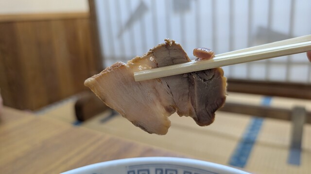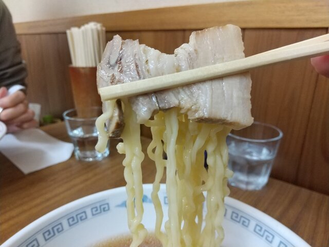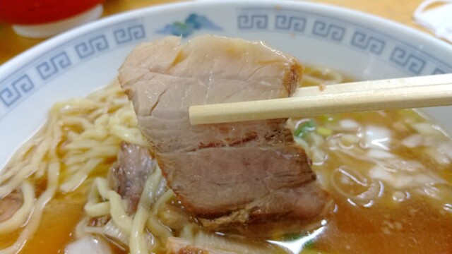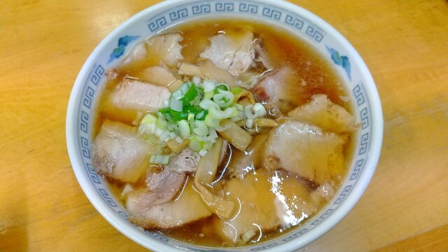 松食堂のチャーシュー麺、美味しかったです。松食堂のチャーシューは絶品です。喜多方ラーメンも多様化してきましたが、松食堂は、喜多方ラーメンの定番である醤油味一本で勝負するお店です。メニューは、ラーメン、ラーメン大盛、チャーシュー麺、チャーシュー麺大盛のみです。スープは喜多方スタンダードである、豚骨ベースの煮干しがやや強め、余韻として鶏ガラを感じる奥深いスープです。麺は地元喜多方市の製麺所の曽我製麺のやや細めの中太麺で、曽我製麺特有のモチモチ感を最大限に引き出す茹で加減です。松食堂自慢のチャーシューは噛み応えをやや残し、噛むごとに肉の旨味がダイレクトに伝わる逸品です。松食堂のチャーシューの美味しさは喜多方でも屈指の美味しさです。喜多方のチャーシューはトロトロ系が人気ですが、松食堂のチャーシューは喜多方市民が自信をもっておすすめします。運が良ければ、「おみやげ刻みチャーシュー」を購入することができます。終末などの混雑時は、ラーメンが運ばれてきた時に代金を支払う前金制になります。駐車場がありませんが、休日は市役所駐車場が開放されています。喜多方市民が推す「絶品!チャーシュー麺」、おすすめです。