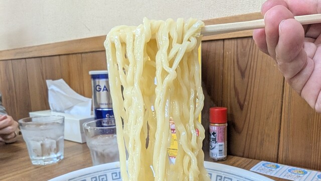 8月10日(日)、お盆前3連休の中日のお昼前、どうしても松食堂のチャーシュー麺が食べたくなった! となりの坂内食堂の行列は100m超、松食堂でも30m、どうしても食べたい。よし、並んぼう! 松食堂に並んで「待つ」! 松食堂のチャーシューメン、美味しかったです。ここのチャーシューは絶品です。松食堂は、喜多方ラーメンの定番である醤油味一本で勝負するお店です。スープは豚骨ベースで煮干しがやや強め、余韻として鶏ガラと野菜の甘みをを感じる奥深いスープです。麺は曽我製麺のやや細めの中太麺で、曽我製麺特有のモチモチ感を最大限に引き出す茹で加減です。松食堂自慢のチャーシューは噛み応えをやや残し、噛むごとに肉の旨味がダイレクトに伝わる逸品です。松食堂のチャーシューの美味しさは喜多方でも屈指の美味しさです。松食堂のチャーシューは喜多方市民が自信をもっておすすめします。週末などの混雑時は、ラーメンが運ばれてきた時に代金を支払う前金制になります。駐車場がありませんが、休日は市役所駐車場が開放されています。喜多方市民が推す「絶品!チャーシューメン」、おすすめです。