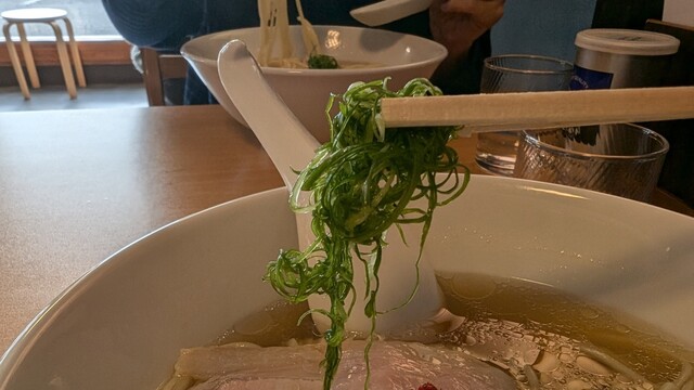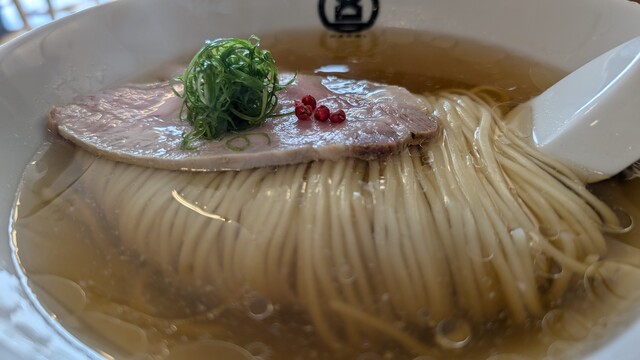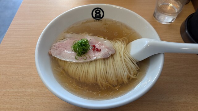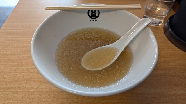 HACHI(ハチ)の弾八の塩、美味しかったです。インスタグラムで営業日を告知するため、訪問が困難になったHACHIですが、友人からの「夜の営業」情報をゲットしてお邪魔しました。今後も週末等に店頭営業を行う予定です。営業日はインスタグラムで告知されます。弾八の塩、やっぱり美味しかったです。店主が試行錯誤して開発した麺の名前がラーメンの名前になりました。麺はお店の中にある製麺室で毎日作られている正真正銘の自家製麺で、麺の名前の由来である麺の弾力と店主の茹で加減が最高で、すすった時のなめらかな舌触りは、対流型の大鍋でしかできない素晴らしい仕上がりです。盛り付けされた麺の美しい麺線は、麺を盛り付ける際に平ざると箸を使わないとできない職人ならではの演出です。スープは鶏ベースですが、豚骨と煮干しなど他の素材の味と旨味が絶妙にまとまり、ストレート麺とスープの一体感を感じます。チャーシューは素材の良さを生かし、最低限の味付けでスープと麺の美味しさを引き出す逸品です。レンゲに麺とスープを少し、そこにネギとピンクペッパーを乗せて食べると、麺とスープの一体感とともに、ピンクペッパーの爽やかな辛味が口の中に広がります。価格設定にも納得する素晴らしいラーメンです。夜営業日の限定の「夜八」も食べてみたいです。会津に新風を吹き込む渾身の一杯、待ってました~!! おすすめです。