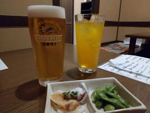 生ビールとオレンジジュース