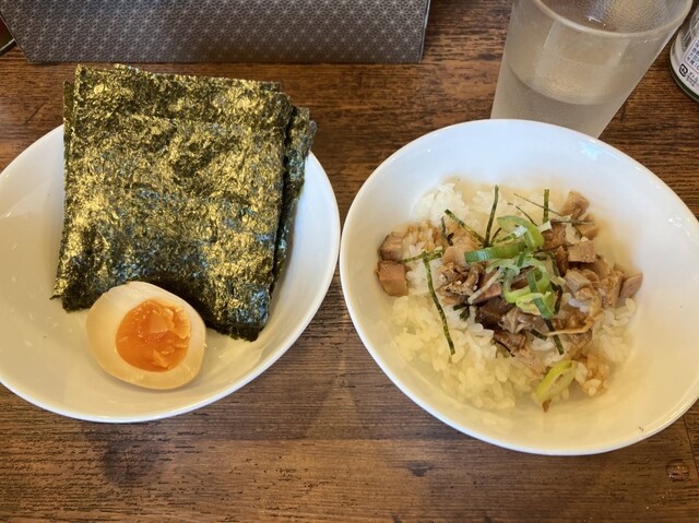 チャーシュー麺、薬味ネギ、フォロワーサービス海苔、半チャーシューまぶし、お好みは全部普通で注文!