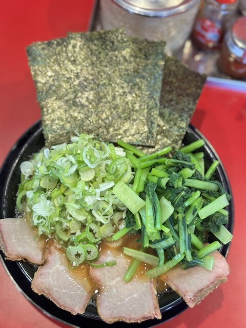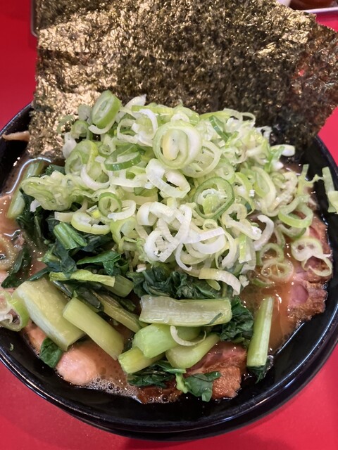 ネギラーメン、小松菜、きざみネギ、油多め