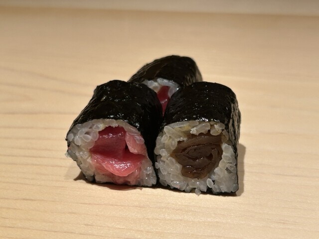 まずはつまみの素晴らしさ!子持ちヤリイカはわたなどを再構築した上部とヤリイカの食感が融合し衝撃的な一品に仕上がっていて、前半からテンションがMAXに!その後のばちこも肉厚のあるばちこで今まででいただいたばちこを遥かに超越したばちこでした。握りもどれもシャリとネタのバランスが最高でしたが、鰯を3枚に薄く切りつけて握られた一貫が衝撃の味わいでした!そして世界から集まる美食家との語らいも最高のスパイスになりました。ご馳走様でした。