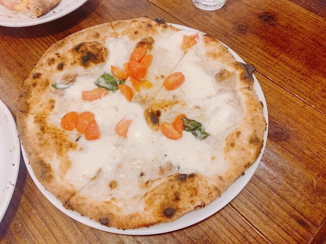 ピザはマルゲリータコンリコッテ、チチニエッリ(生しらす、トマトソースベース)