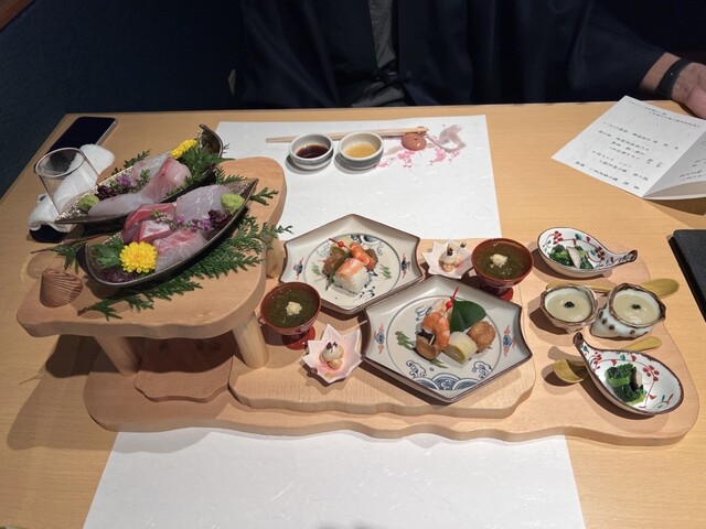特に、お刺身のブリ、タイ、マトウダイ、ナスのスリ流し、蟹の錦糸揚げ、和牛小鍋が絶品、美味い