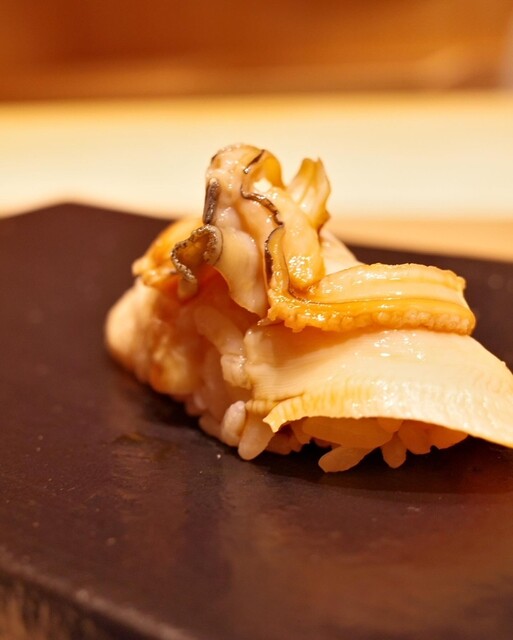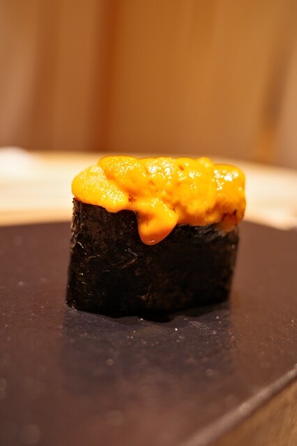 6〜8月頃が特に堪能できる。利尻昆布も有名であり、それ食べて育った子だから間違いない。軍艦巻きで上にドサッ❗️見た感じからとろける食感確認でき、想像以上に滑らかとろり甘さが超越してた。