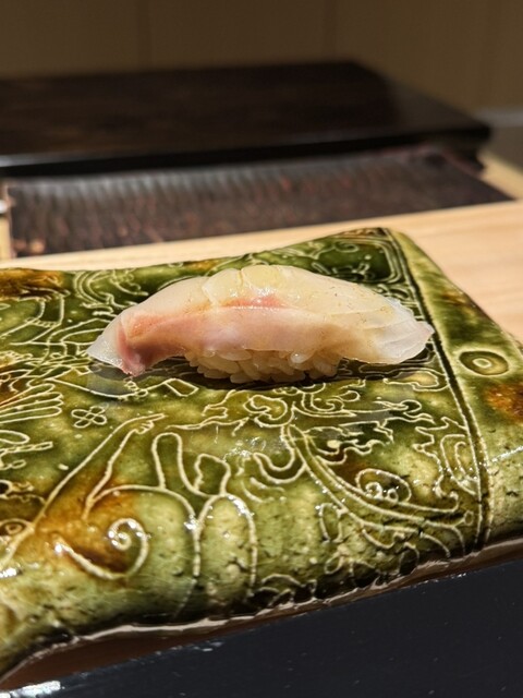 ⭐️カウンター目の前に名古屋城!織部の皿に手の込んだ握り連続!丁寧な仕事、気さく接客!特別な時間過ごせた。