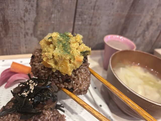 玄米ってあまり食べたことがなかったのですが、こちらのお店は酵素玄米のお店。店内でイートインしてみました