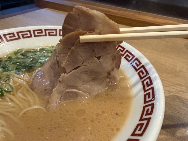 ラーメンは小郡系ラーメンと言われる臭みのないすっきりとした豚骨、ほのかな甘みのある味。