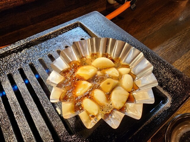 このニンニクをお肉に挟んで食べても美味しかったです。お酒がすすむ一品。