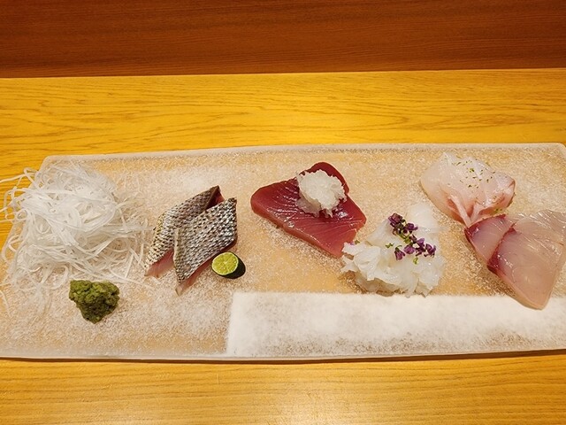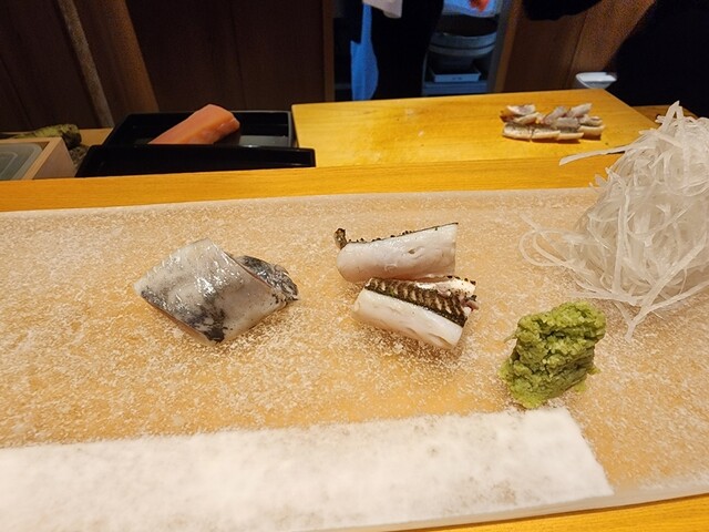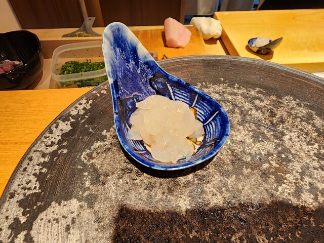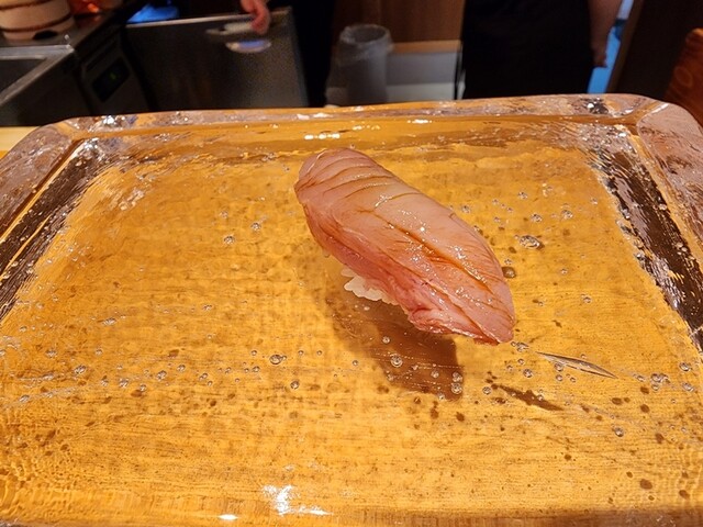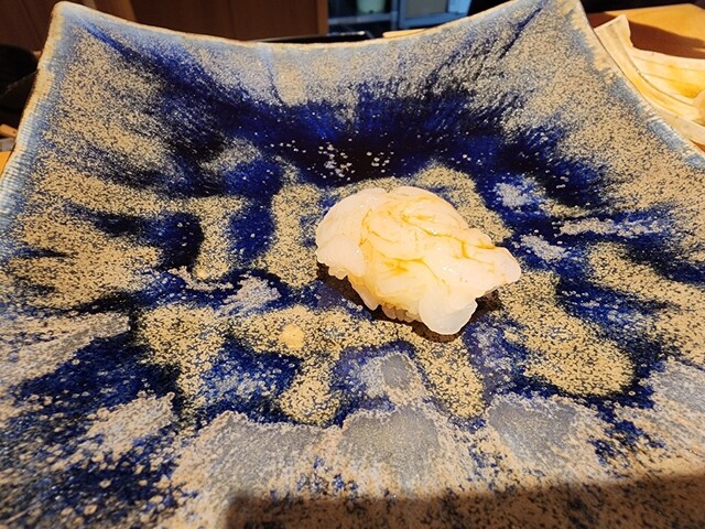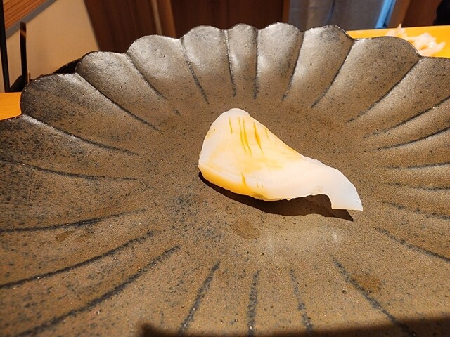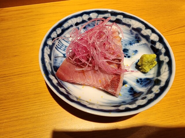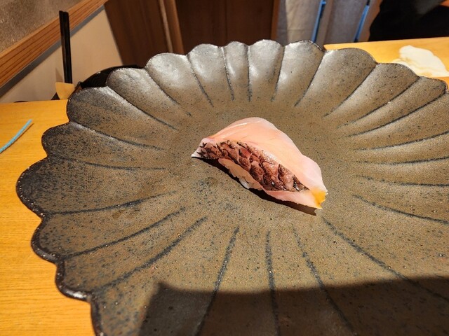 鰤の砂ずりは、名前の通りで海底を泳ぐときに砂で擦れるお腹の所で鮪でいう大トロの下側の部位。鮪だと"蛇腹"と呼んだりもします。脂がくどくなく上品で後を引かない口当たりの良さで絶品でした。