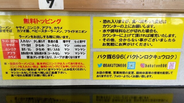 県北を出るに当たり、食べておくべきラーメン。やはりこちらも外せません。バク豚696。たぶん最後の訪問になるでしょう。