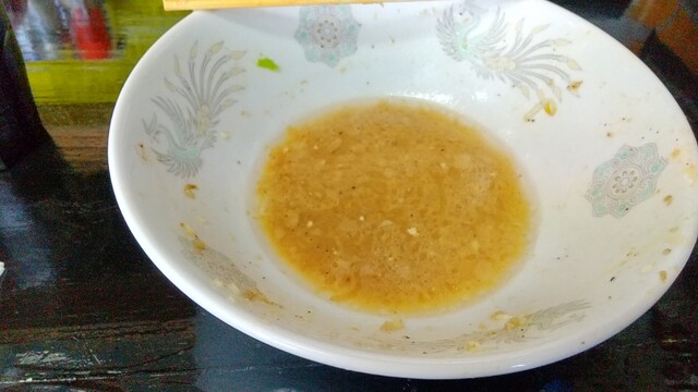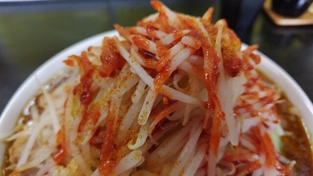 塩気が強くて濃厚なだけではない、しっかりしたスープ。軟弱なんちゃって二郎系だと、スープが負けて、ニンニクの嫌な辛みだけが残ってしまいますが、こちらのお店ではそんなことはありません。豚も本当にしっかりしています。中盤、一味唐辛子を振って味変しながらすすっていくと、いいアクセントになりました。しっかり完食、ごちそうさまでした!