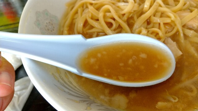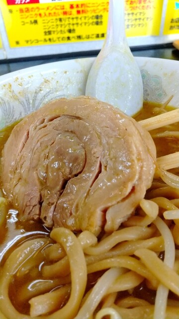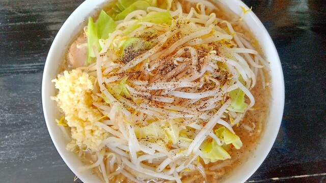 日にちからいって、たぶん本年の最終麺。けっこう冷える日、スープありの気分ゆえ、「バク豚ラーメン」大¥950、ニンニクありヤサイ増しでオーダー。卓上のカエシを回し掛けてヤサイを減らし、天地返しをしたあとは、黒胡椒と白胡椒をちょいちょい掛けながら、ずっしりと重い麺を全力でたぐって口と腹に収めます。