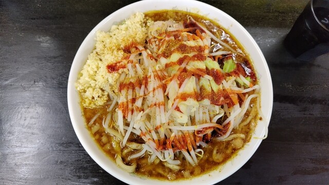 カレー味って、惹かれはするけれど、量が多いと食べ飽きしてしまいがちなものですが、こちらはカレーが主張しすぎず、でもいつものまぜそばにしっかり変化を与えて、かなりイイ感じ! グイグイと食べ進め、久しぶりの二郎系を十二分に楽しみ、ごちそうさまでした!