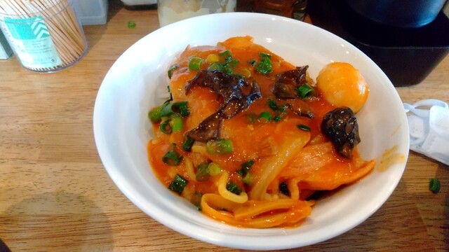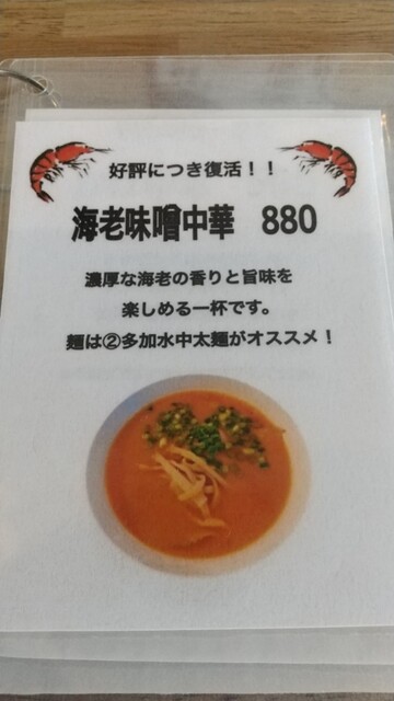 秋田県の海老ラーメンと言えば横手市の「羅漢」がまずは思い浮かびますが(https://tabelog.com/rvwr/006090416/rvwdtl/B301219909/)、大人気のこちらのお店「麺屋周」さんで、以前限定メニューだった「海老味噌中華」が復活していました。2回目の訪問、五目中華とどちらにするか悩みに悩んで、こちらを選択。本体¥880+大盛り¥150+チャーシューライス¥250と贅沢しました。
