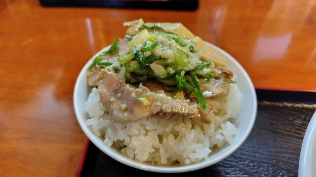 まずはチャーシューを2枚ほど、メンマとネギも少しライス上に移してスープをひとすくいかけ、セルフチャーシュー丼を爆誕させてから、麺に箸入れ。