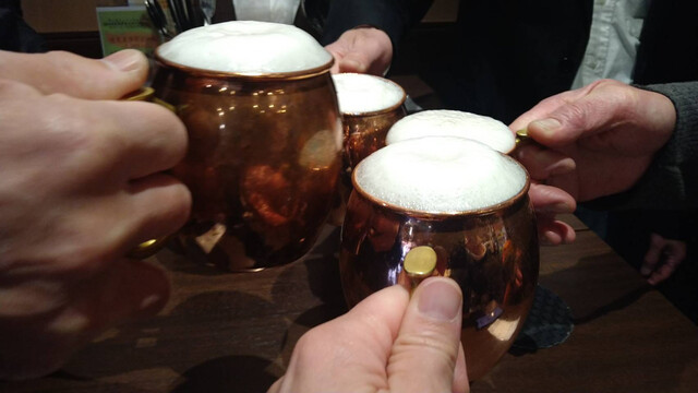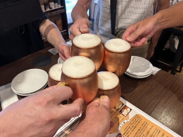 先ずは、銅マグでスーパードライで乾杯start。