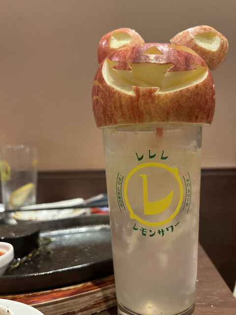 そして映える「アップルレモンサワー」ハロウィンバージョン。「淡路島産 マイヤーレモンサワー」←めっちゃスッキリ。