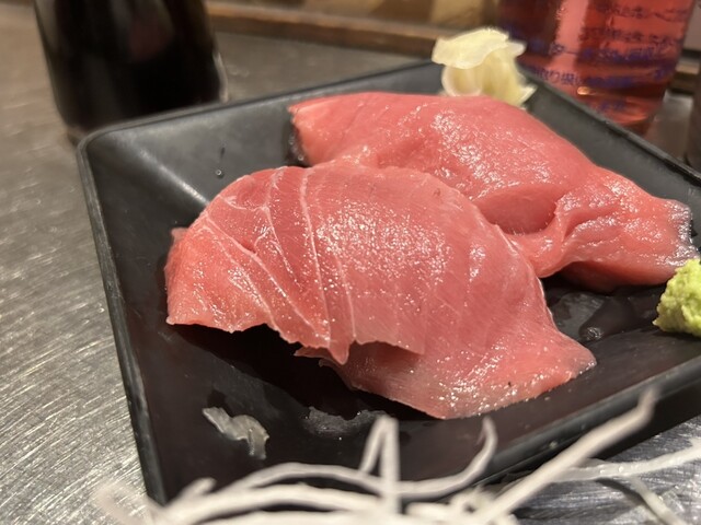 本鮪トロ・活ツブ貝・鰤を…やはり生本鮪美味しいね。ツブ貝もコリコリで、鰤も脂が乗っているよ。あとヒーロー人気の分厚い「ハムカツ」いつもSNSで拝見していた「本鮪握り」