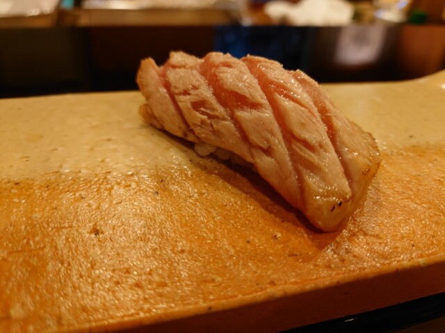 寿司職人の手によって握られる寿司は、どれも繊細で美しい一品。特に、江戸前の技術で仕込まれたネタは、ただ新鮮なだけではなく、旨味を引き出す手間が惜しまれていません。たとえば昆布締めや軽く炙られた白身魚など、素材ごとに異なる調理法が用いられ、ひとつひとつに深い味わいが宿ります。