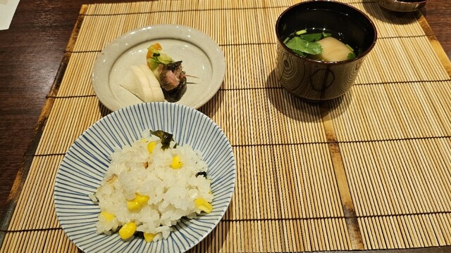 夕食は懐石料理。亀岡産のお米と味噌以外は、全国から厳選した食材が使われている。食事は個室の会場で提供され、外部の音が一切聞こえず、料理と会話に集中できる贅沢なひとときを過ごせた。