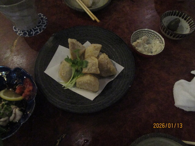 ①牡蠣ポン酢、②白子ポン酢、③里芋から揚げ、④中津か...