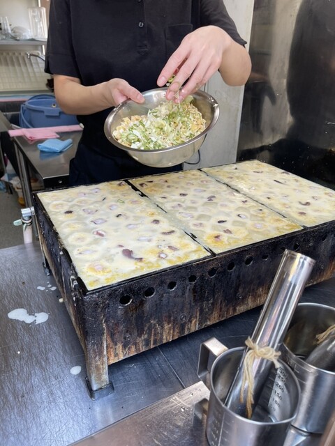 醤油は後塗りではなく、具材を投入後に出汁醤油を加えて焼き上げます。