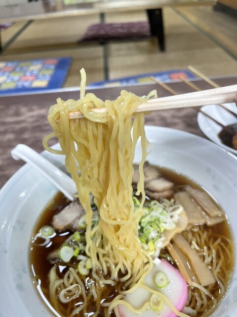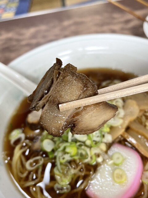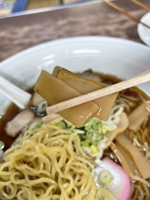 細縮れ麺、チャーシュー、メンマ、かまぼこ、刻みネギ。
